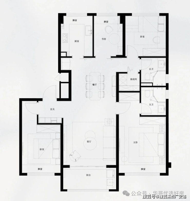 房房带飘窗,客餐厨取阳台能够构成LDKG一体化南北通!